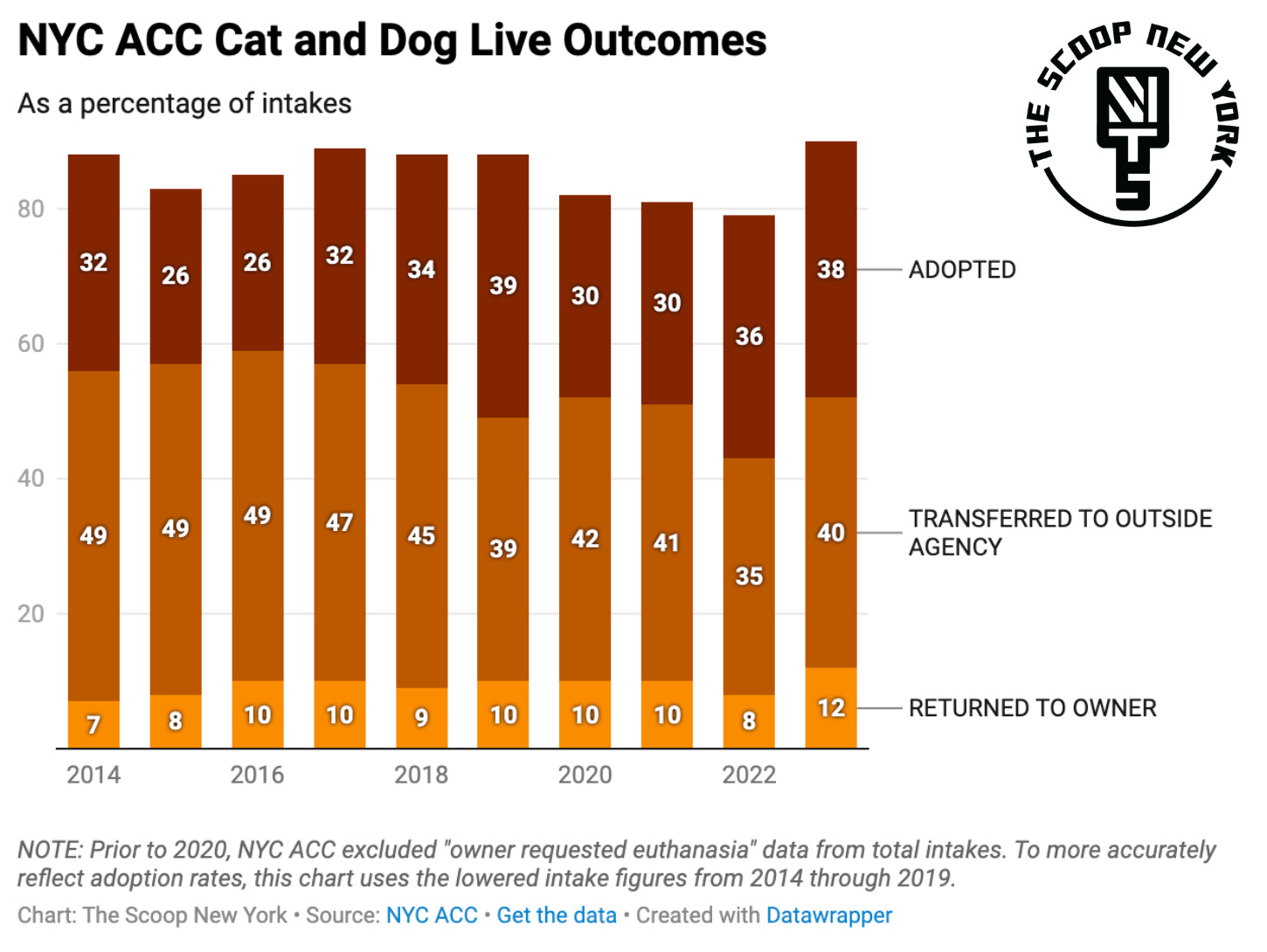 The Scoop New York is a website and newsletter covering the movement for a true no-kill New York State, from BUF to BK. NYC ACC KILLS, published by TSNY, enumerates and memorializes adoptable cats and dogs who were exterminated by Animal Care Centers of New York City.