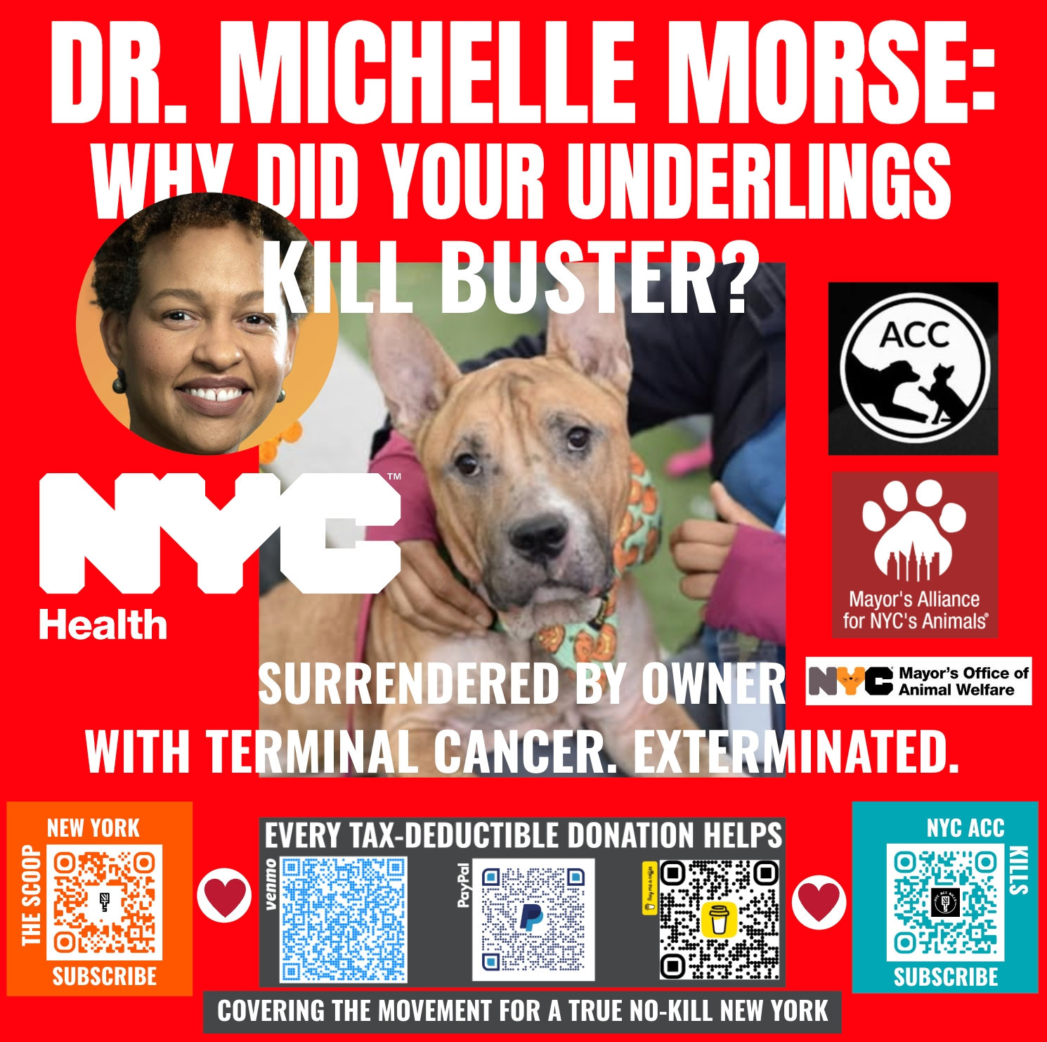 Don’t get me wrong. Being the mayor, obviously you should care that your municipal “animal care centers” are in reality a kill pound system where, for example, New Yorkers with terminal illnesses, deceived by ACC propaganda, take their beloved cats or dogs to be rehomed, only to have the “care center” shortly thereafter kill their family pets instead, for no reason other than discretionary killing is easier than rehoming. That’s it. That’s the reason.