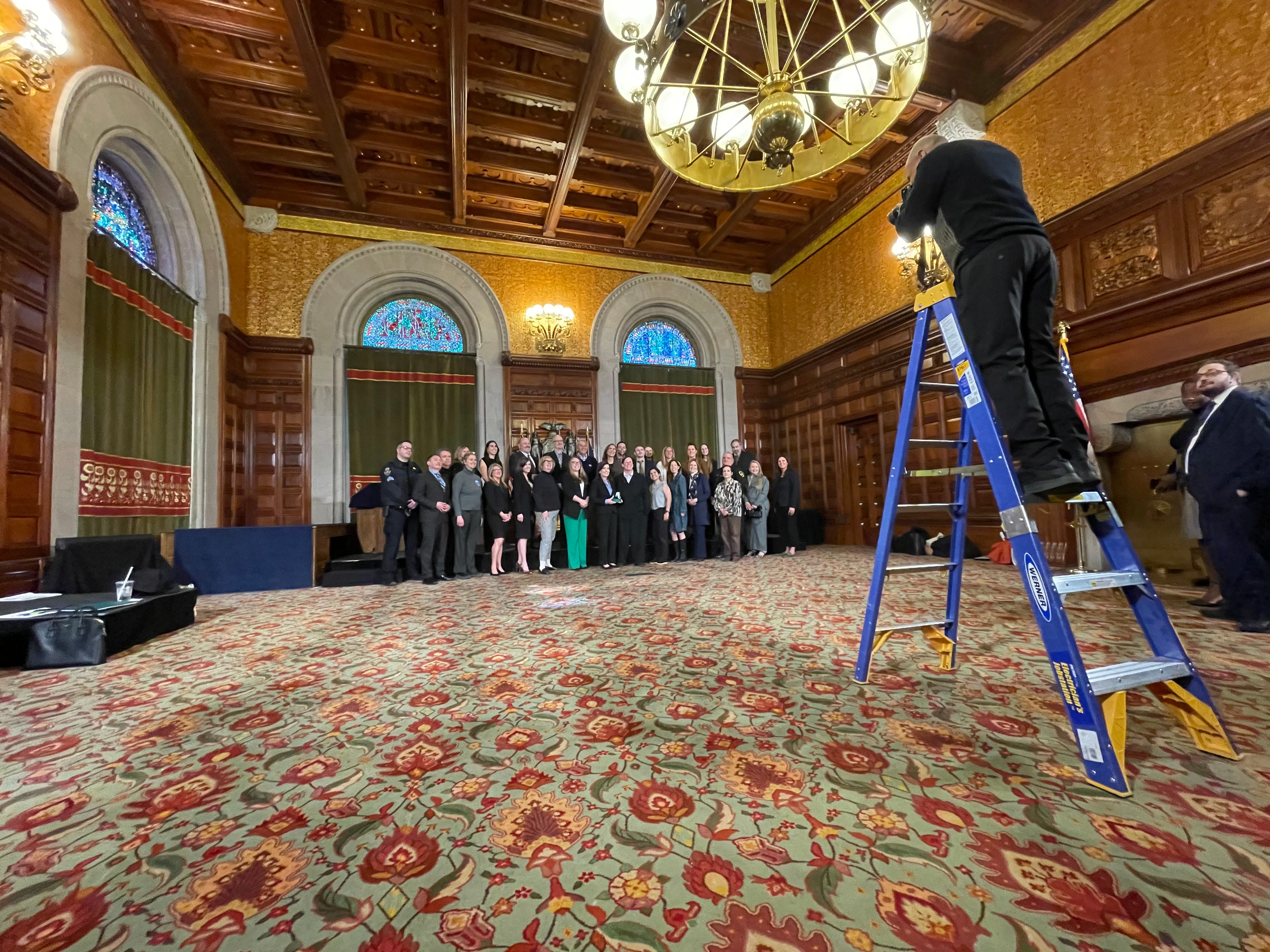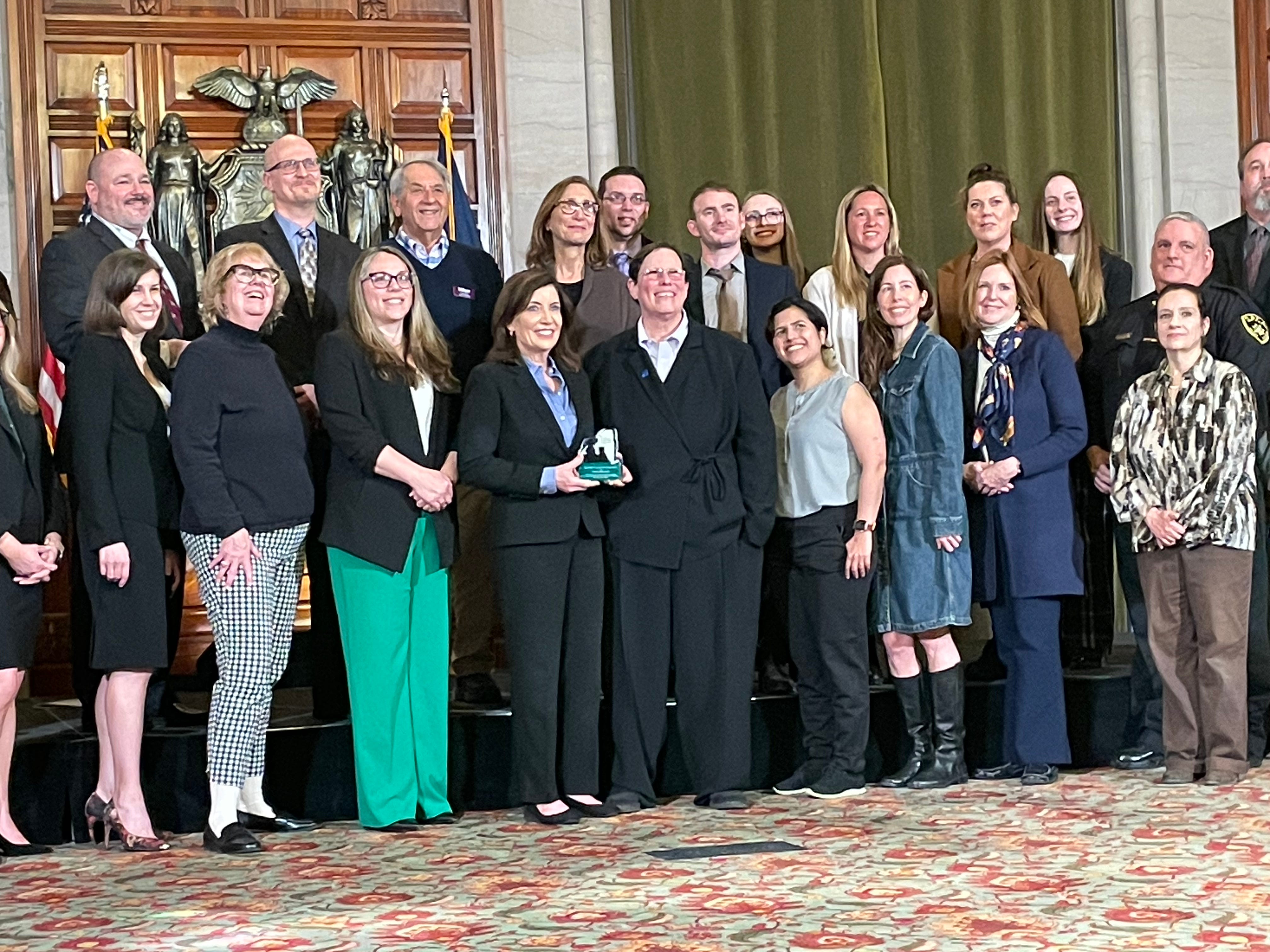 This year’s NYSAPF advocacy day was on Tuesday, March 12. Around lunchtime, after a beautiful almost-spring morning spent ducking into one electeds’ office after another, members’ (somehow) already high spirits were further buoyed by a brief audience with the governor, who was presented an award by NYSAPF Executive Director Libby Post.