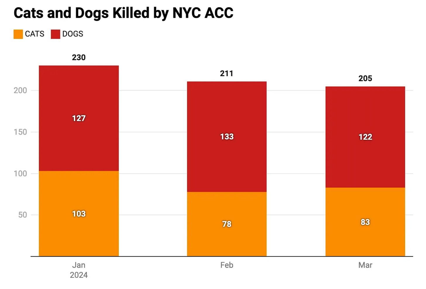 ACC killed 646 cats and dogs in the first three months of this year, a pace that extrapolated would just about equal total extermination figures for 2021, before those numbers rose in 2022 and 2023.
