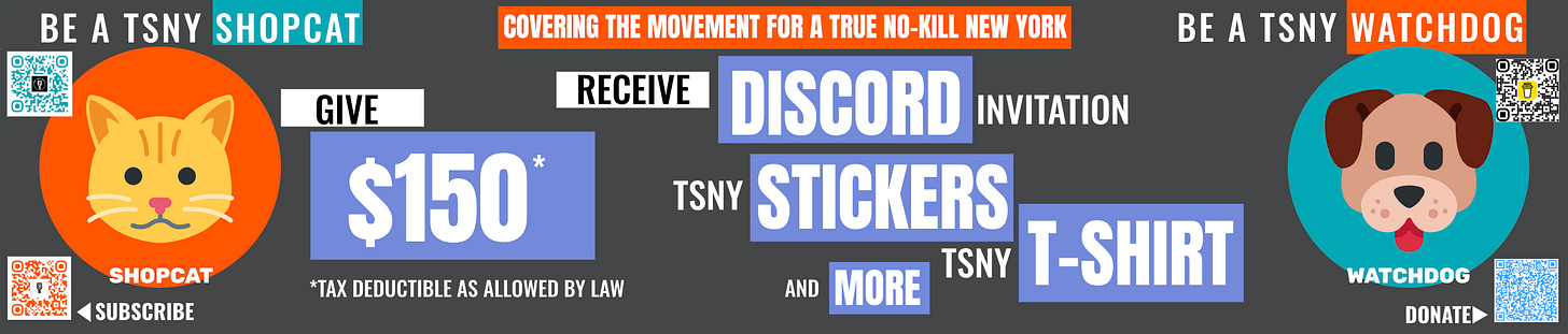 The Scoop New York is a newsletter covering the movement for a true no-kill New York State, from Buffalo to Brooklyn. NYC ACC KILLS, published by TSNY, enumerates and memorializes adoptable cats and dogs who were exterminated by Animal Care Centers of New York City.
