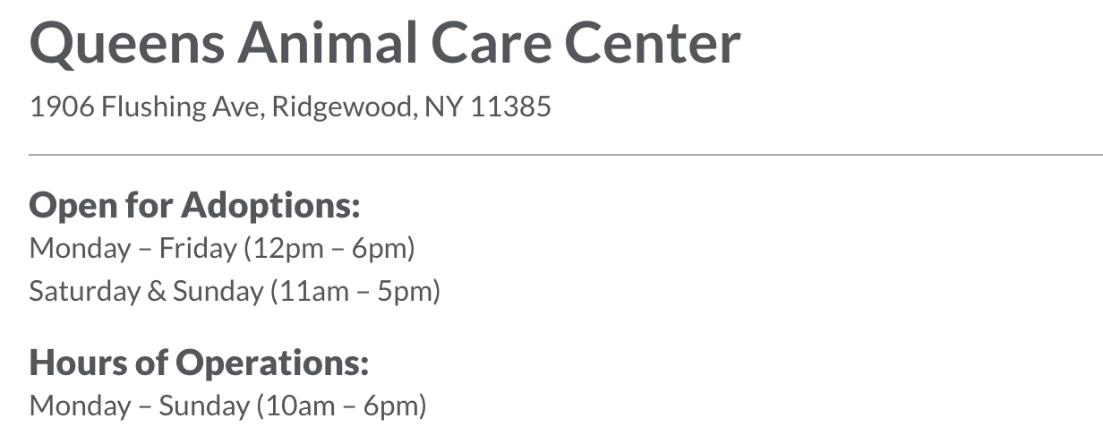 The Scoop New York will have more on ACC Queens and its impact, or lack thereof, in the coming weeks and months. In the meantime, reports say, “The new Queens location is already over its capacity for dogs.”