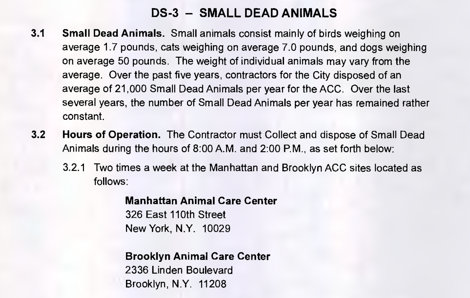 Editor’s note: This post was amended to include additional details from the documents related to NYC ACC’s disposal of the animals it kills.