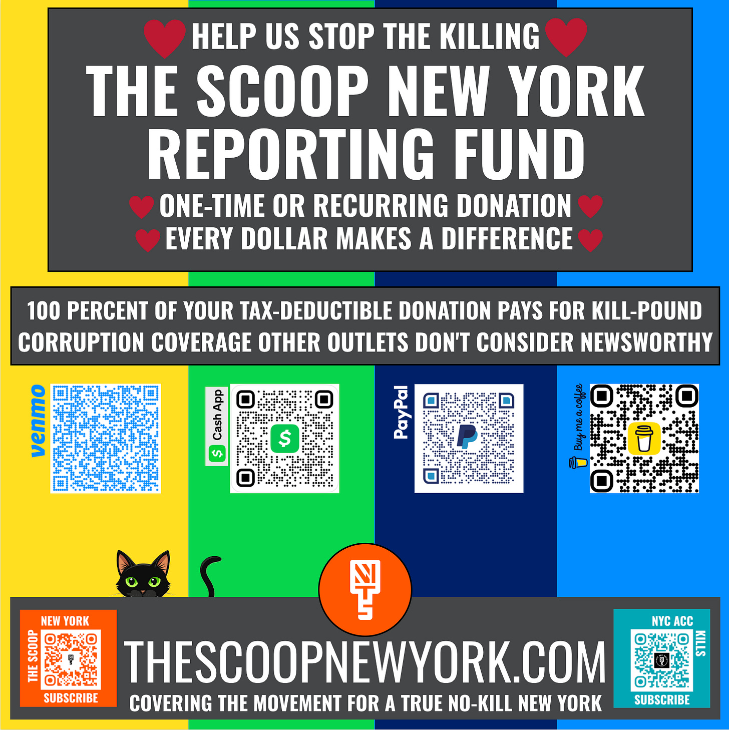 Tax-deductible donations and paid subscriptions make it possible for The Scoop New York to investigate and expose kill-pound corruption statewide. Tap or click here to donate or subscribe. Thank you.